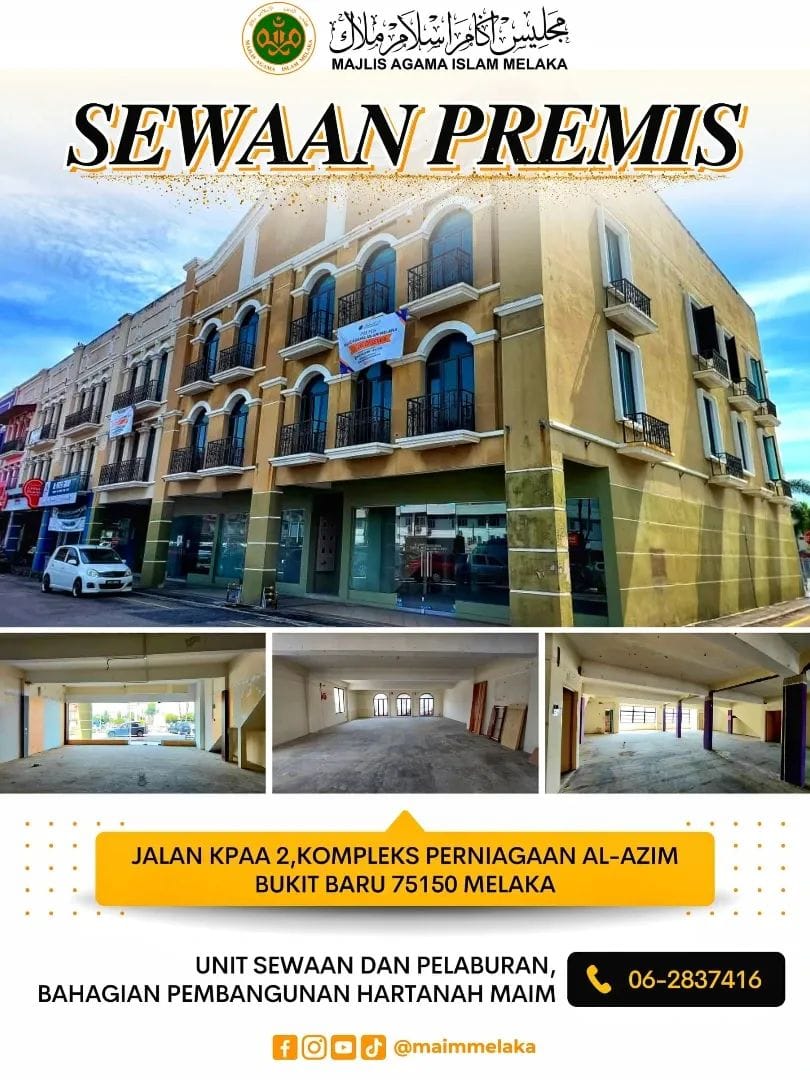 | Catatan | Untuk permohonan, sila hadir ke Pusat Islam Melaka berhubung Unit Sewa dan Pelaburan MAIM | ||